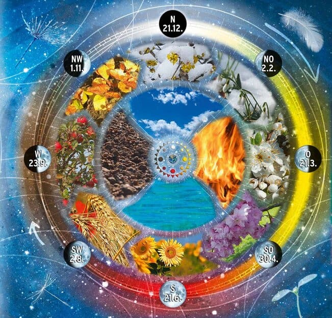 Du lernst die Bedeutung der einzelnen Himmelsrichtungen kennen und erfährst etwas über die Zyklen im Rad, welche du auch in der Natur wiederfindest.